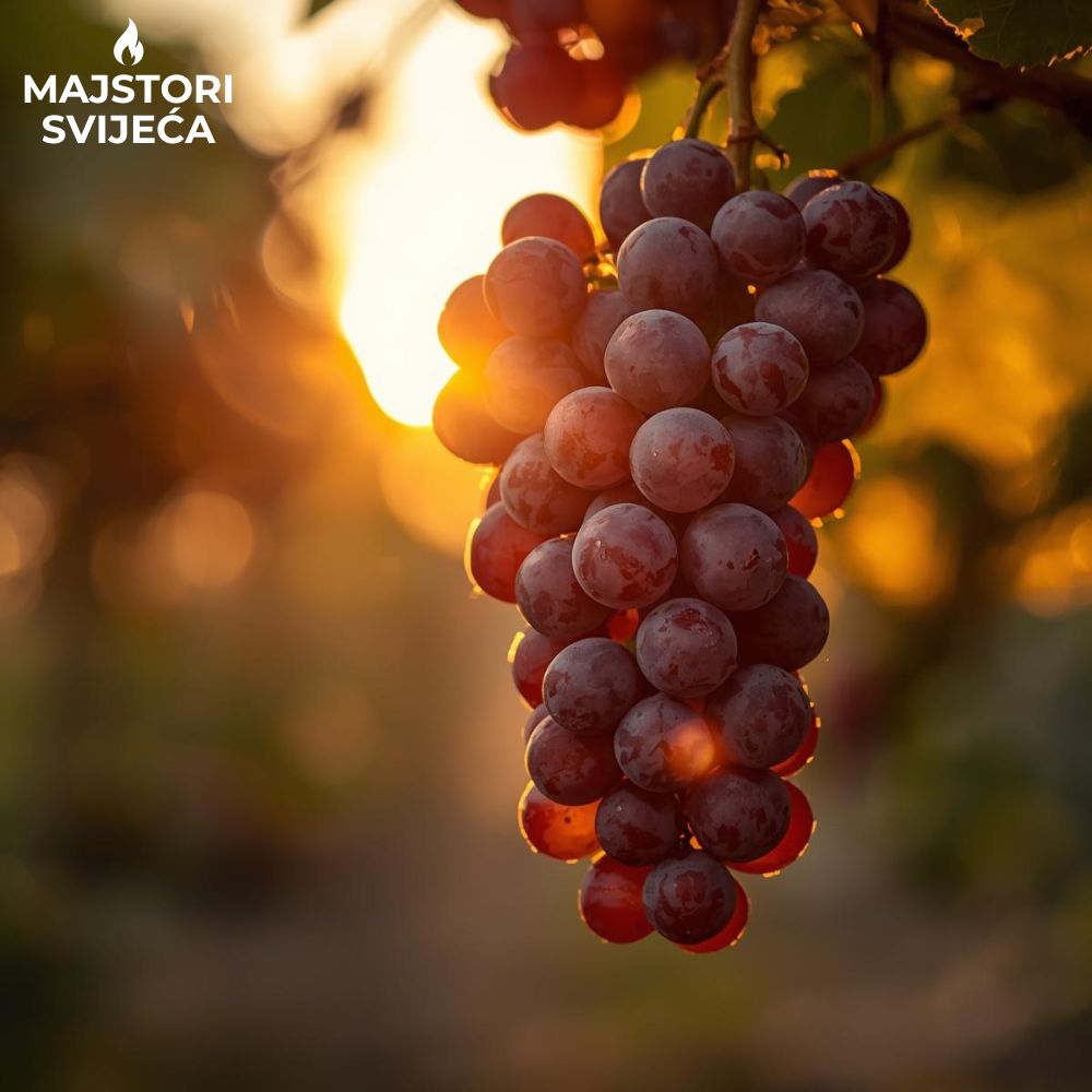Zamislite prostor ispunjen mirisom svježe ubranog grožđa koje puca od sočnosti. Slatke voćne note šire se prostorom i stvaraju toplu, vedru atmosferu koja podsjeća na sunčane vinograde i trenutke opuštanja uz svježe voće.
