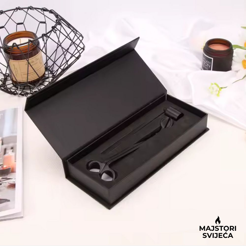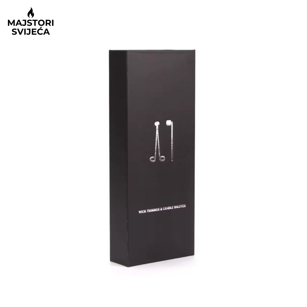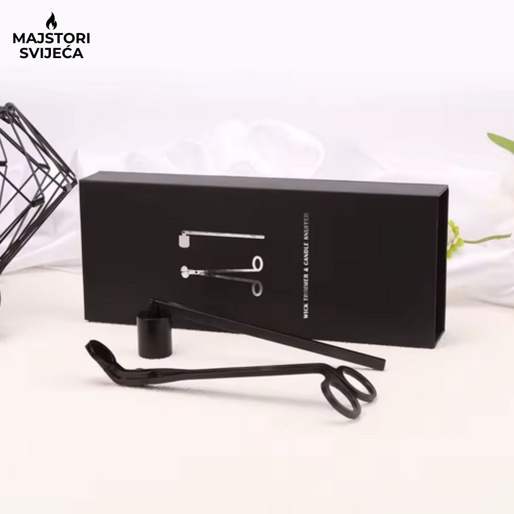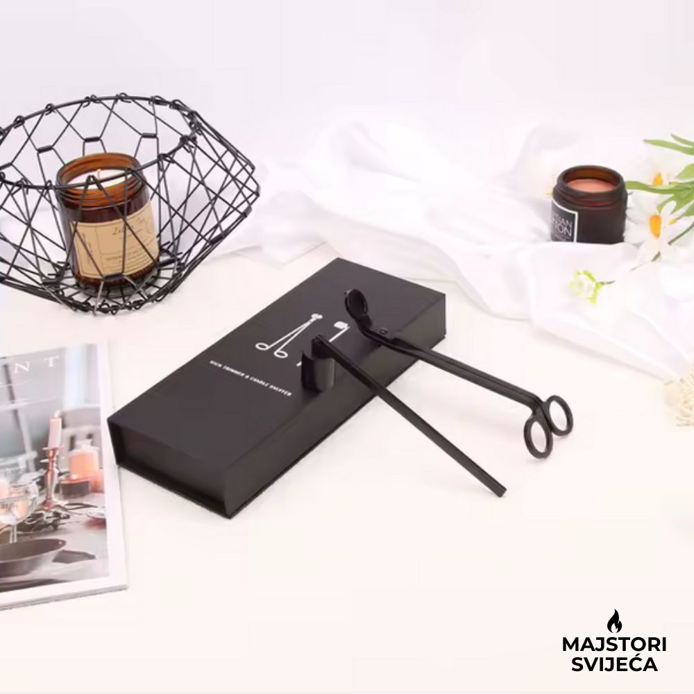 Škare za fitilj (wick trimmer) – precizno skraćivanje fitilja na ~5 mm.